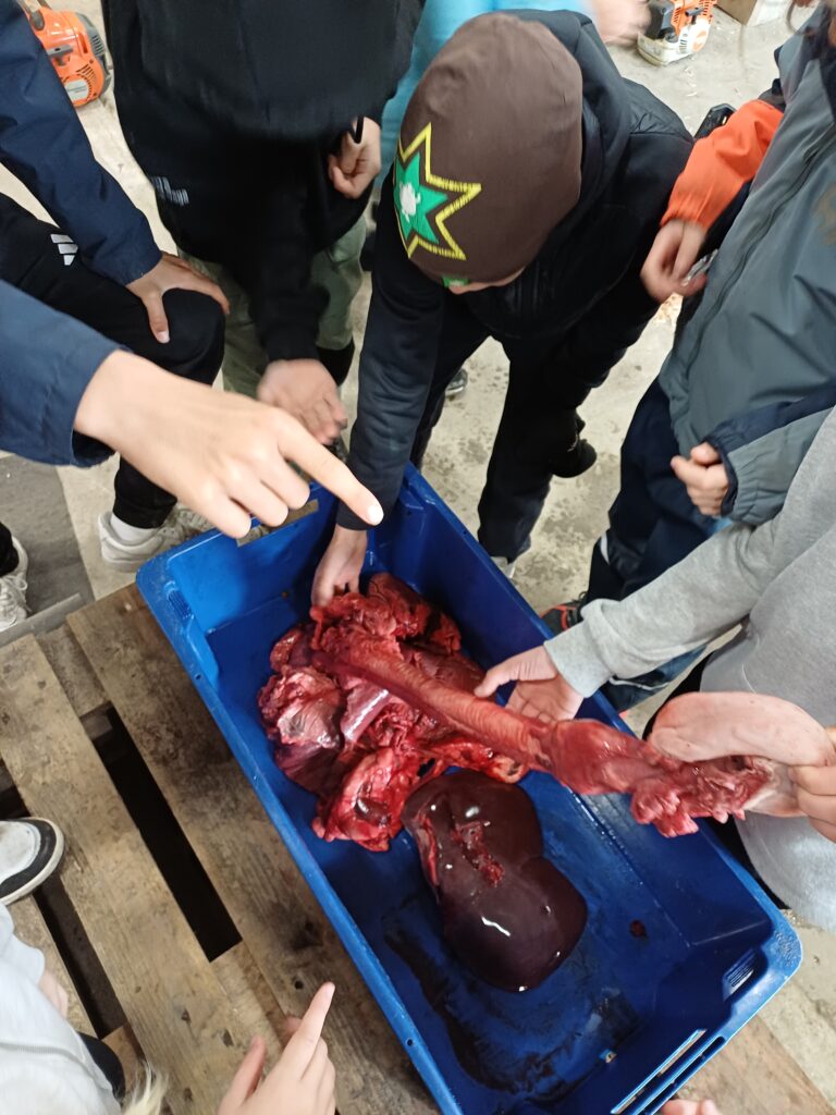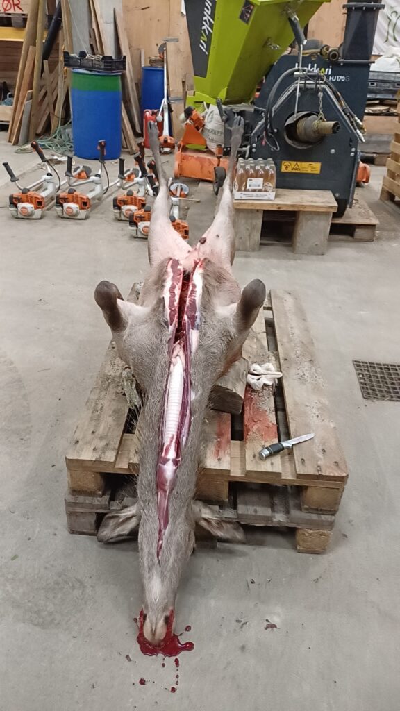 - Det vart synt fram ei kolle inne i bygninga, der ein kunne lære om hjortevilt. Det var også synt fram gevir og innvollar som hjarte, lever, milt, spise- og luftrøyr osb.
