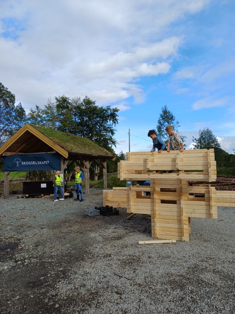 - Både store og små fekk prøvd lafteteknikk med laftebyggesettet nede ved grindbygget vårt, i tillegg kunne ein bygge ei såkalla Da Vinci Bru.