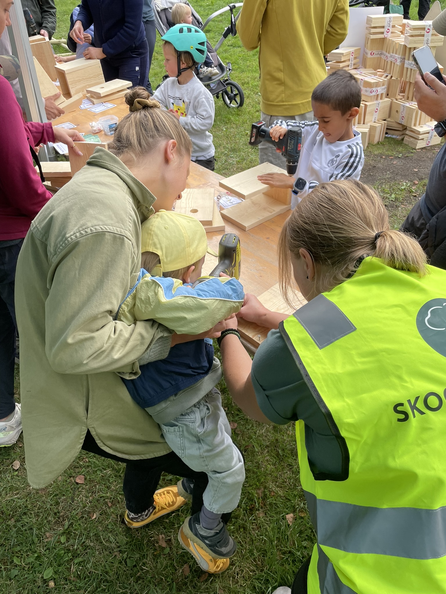 På Sognsvann var køen for å snekre fuglehotell lengre enn køen til kiosken. Og under et stort tre var det mange som fant roen med spikking. Noen synes det var det beste med hele dagen – såpass at en mor til slutt måtte dytte litt forsiktig i poden og si «vi kan ikke sitte her og spikke hele dagen». Men poden hadde plukket seg ut sju perfekte pinner som lå i kø – løsningen ble å laste alle over i sekken til mor, og fortsette spikkingen hjemme.